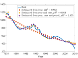 [ 'Estimated from year and cars, $pR^2$ = ' num2str( pR2value( 2 ), '%.3f' ) ], ...