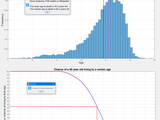 Then it asks you an age (like your age) and gives you the the age that you'll have a 50% probability of living to. It also prints to the command window those people who were unusually young or old when they died.