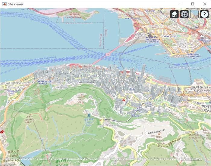 if exist('viewer','var') && isvalid(viewer) % viewer handle exists and viewer window is open clearMap(viewer); else viewer = siteviewer("Basemap","openstreetmap","Buildings","hongkong.osm"); end