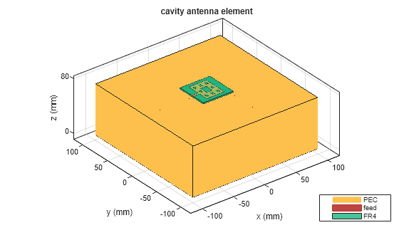 cavity-backed antenna with default property values. The default dimensions