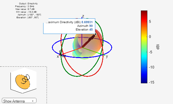 Name=Value)peakRadiation(linearArray(Element=cassegrain),12e9,ElementNumber=2)