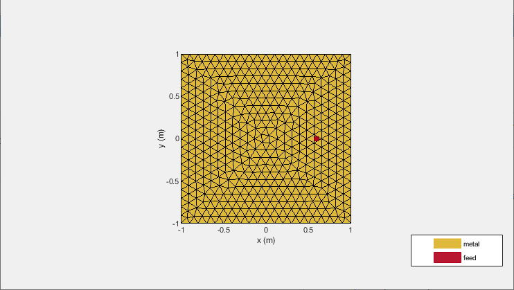 createFeed(antenna,FeedLocation,NumEdges) creates antenna feed for the customAntennaStl object at the location defined in FeedLocation argument and the number of edges specified in NumEdges argument. The antenna feed is created along the triangle edges defined in the FeedLocation argument.