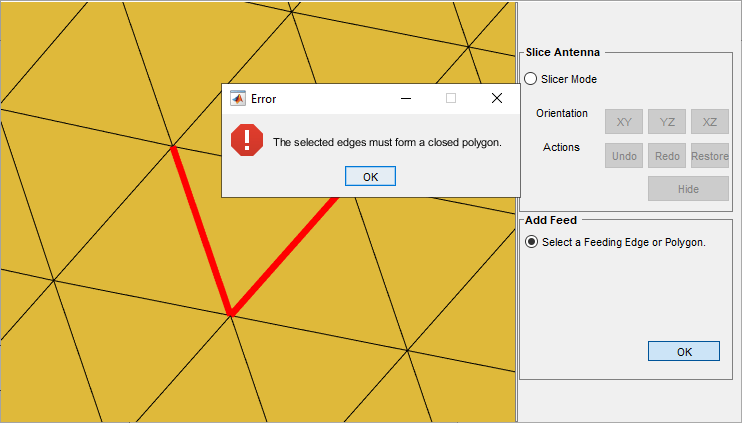 Select Select a Feeding Edge or Polygon under the Add Feed pane to select the edges to form a closed polygon. Click OK to define the selected edges as the feeding edges.