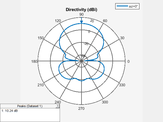 output1 = output.MaxDirectivity+output.MismatchLoss; % Directivity/Gain at zenith