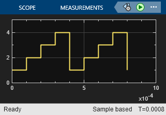 In the simulation, switch the input port that gets driven with the signal by using the repeating staircase sequence generator. Each port is excited for 0.1 ms. Depending on the port that gets excited, the array main beams switch in direction. This can be seen in the output signal levels at each receiving antenna. Within a 0.1 ms block of time, 1 out of the 4 received signals dominates the remaining three indicating the effect of the beamforming.
