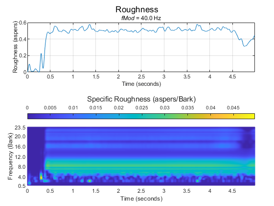 roughness = acousticRoughness(audioIn,fs) returns roughness strength in aspers based on Zwicker [1] and ISO 532-1 time-varying loudness [2].