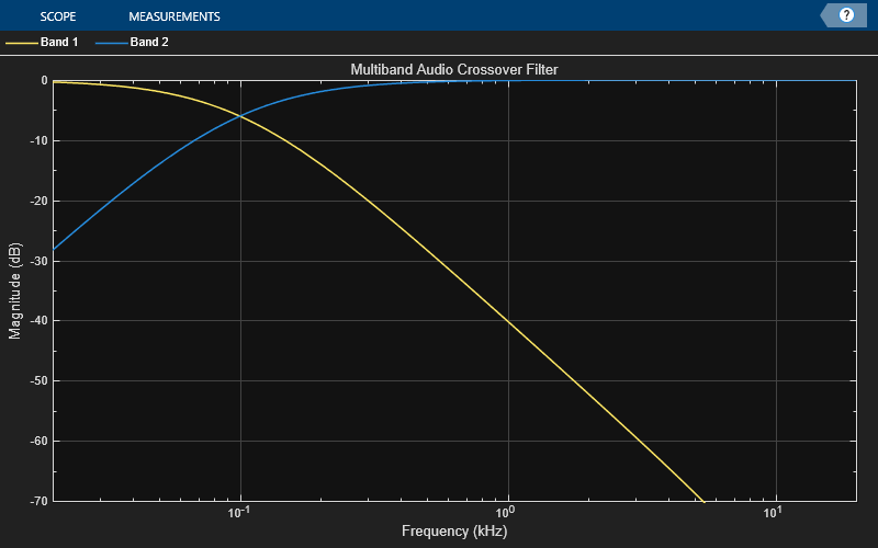 response of the crossFilt)crossoverFilter. The plot is updated