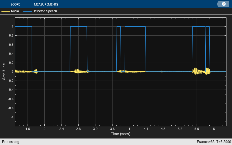 roi = detectspeechnn(audioIn,fs,Name=Value)detectspeechnn(audioIn,fs,MergeThreshold=0.5) merges speech regions