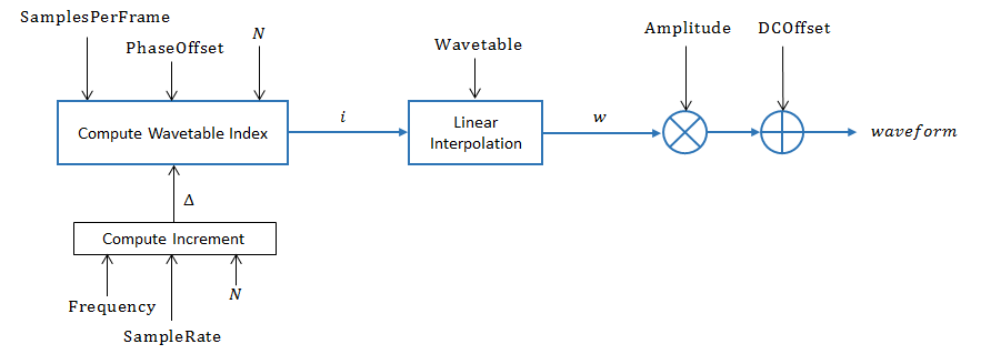 defined by a single-cycle waveform cached as the Wavetable property of