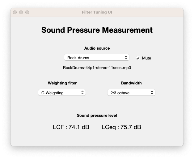 This example demonstrates how to measure sound pressure levels of octave frequency bands. A user interface (UI) enables you to experiment with various parameters while the measurement is displayed.