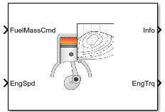 The Mapped CI Engine block implements a mapped compression-ignition (CI) engine model using power, air mass flow, fuel flow, exhaust temperature, efficiency, and emission performance lookup tables. You can use the block for: