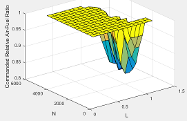The commanded lambda, , lookup table is a function of estimated engine load and measured engine speed