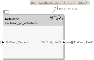 To link a requirement to an AUTOSAR component, drag the requirement from the Requirements Browser to the component block. For example, drag requirement 4 to the Actuator component block.