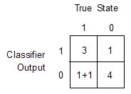 Diagnostic table, specified as a two-by-two numeric array. The first row indicates the number of samples classified as positive, with the number of true positives in the first column and the number of false positives in the second column. The second row indicates the number of samples classified as negative, with the number of false negatives in the first column and the number of true negatives in the second column.