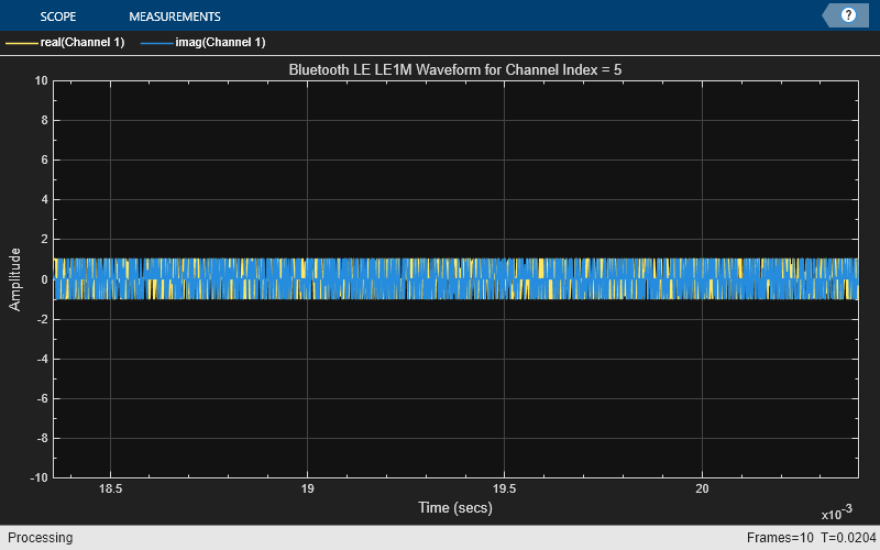 timeScopeVis.Title = "Bluetooth LE " + phyMode + " Waveform for Channel Index = " + num2str(channelIndex);