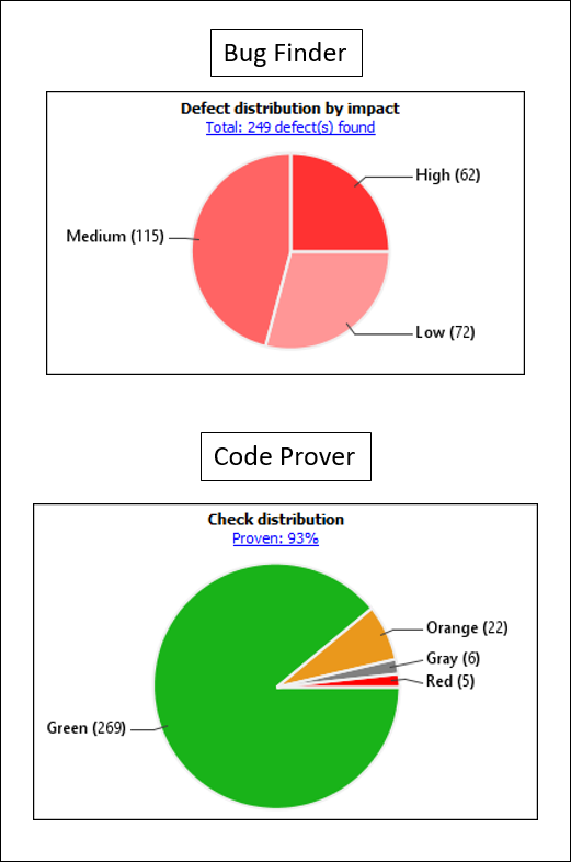 To see only red checks in Code Prover, click the corresponding section of the Check distribution chart.