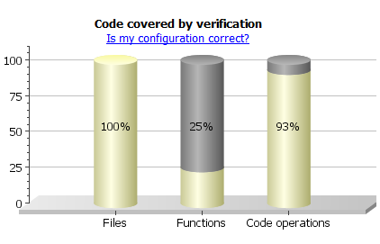 For instance, in the following graph, the Dashboard pane shows that as much as 75% of your functions have not been checked for run-time errors. (In the functions that were checked, only 7% of operations have not been checked.)