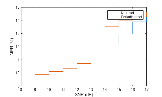 also returns the minimum percentage MER over the configured measurement interval.merdb,minMER] = mer1(refSym,rxSym)