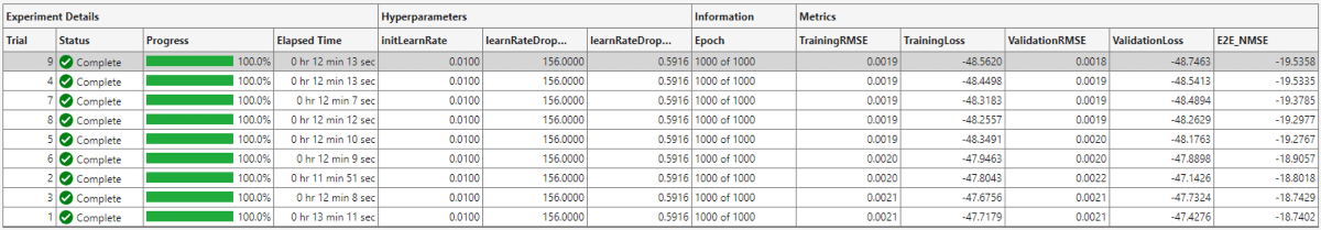 The ninth trial produced the best E2E_NMSE. This example uses this trained network as the saved network.