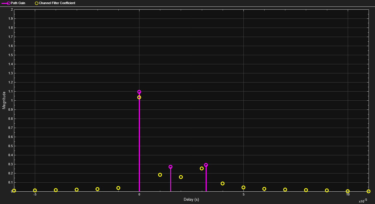 rayChan = comm.RayleighChannel( ... SampleRate=10000, ... MaximumDopplerShift=100); sig = 1i*ones(2000,1); out = rayChan(sig); rayChan