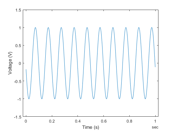 The addinput function attaches an input channel to the DataAcquisition. You can add more than one channel to a DataAcquisition. This example uses one input channel, Ai0, which is connected to a function generator channel outputting a 10 Hz sine wave.