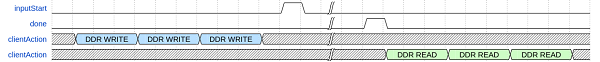 The clientAction signals represent your actions of loading input data and reading output data into the DDR memory.