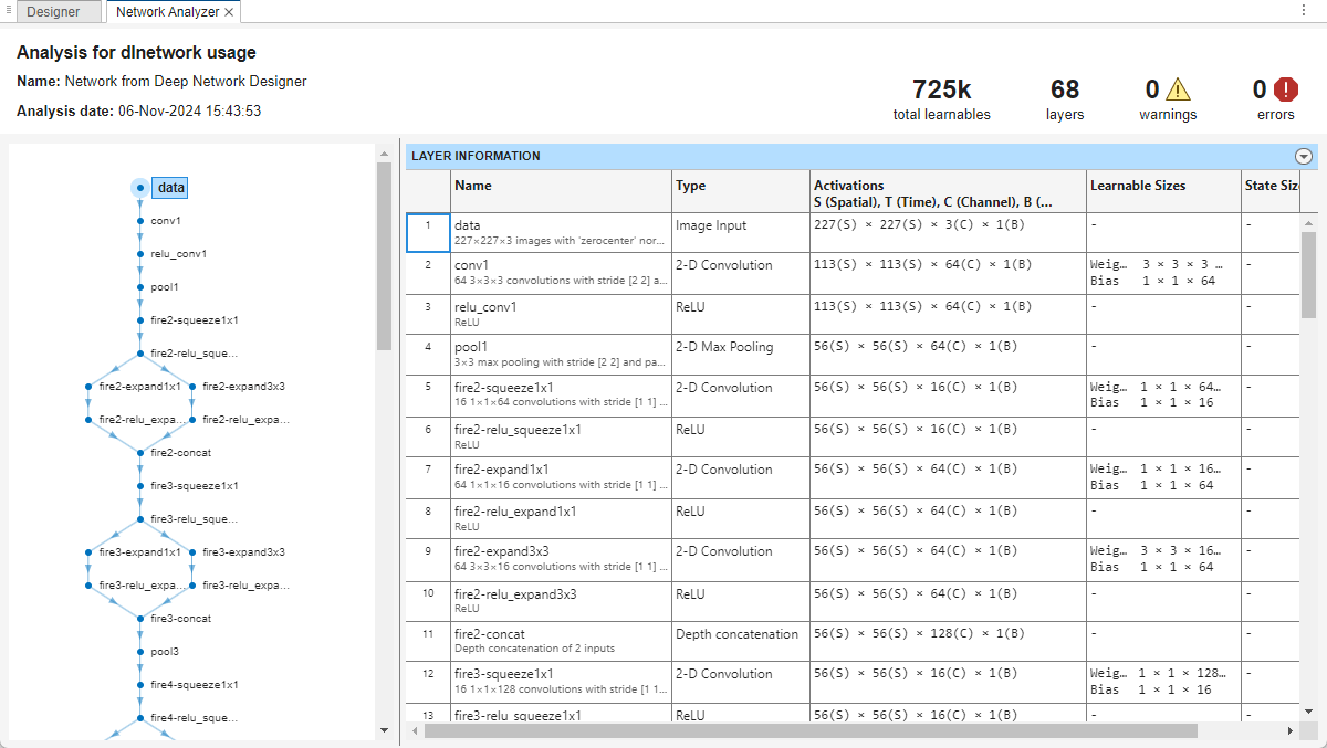 Select SqueezeNet from the list of pretrained networks and click Open.