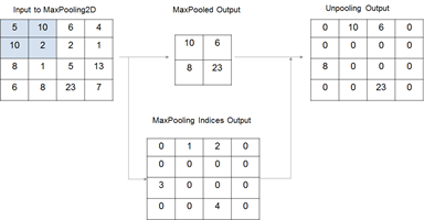 To use the output of a max pooling layer as the input to a max unpooling layer, set the