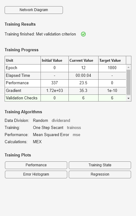net.trainParam.max_fail | 6 | Maximum validation failures |