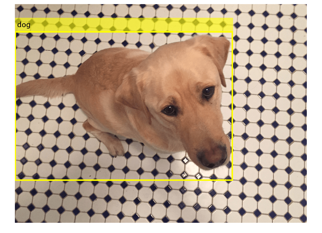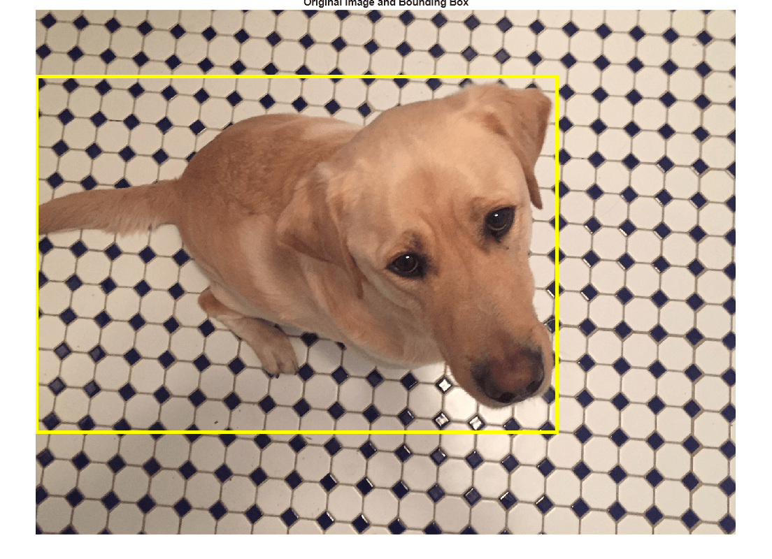 filenameImage = "kobi.png"; I = imread(filenameImage); bbox = [4 156 1212 830]; label = "dog";