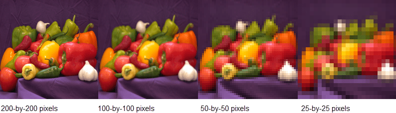 Spatial resolution is the number of pixels used to construct a digital image. An image with a high spatial resolution is composed of a greater number of pixels and as a result the image contains greater detail. Super resolution is the process of taking as input a low resolution image and upscaling it into a higher resolution image. When you work with image data, you might reduce the spatial resolution to decrease the size of the data, at the cost of losing information. To recover this lost information, you can train a deep learning network to predict the missing details of an image. In this example, you recover 28-by-28 pixel images from images that were compressed to 7-by-7 pixels.