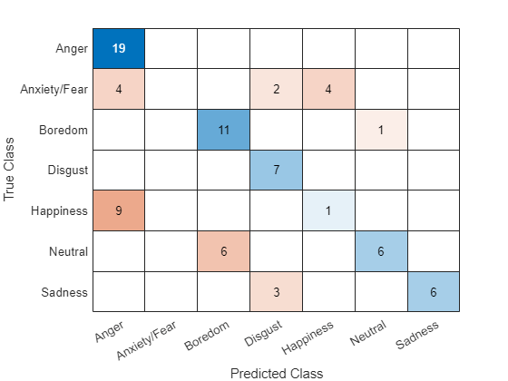 emotionCodeNames = ["W" "L" "E" "A" "F" "T" "N"]; emotionNames = ["Anger" "Boredom" "Disgust" "Anxiety/Fear" "Happiness" "Sadness" "Neutral"]; emotionLabels = replace(emotionLabels,emotionCodeNames,emotionNames);