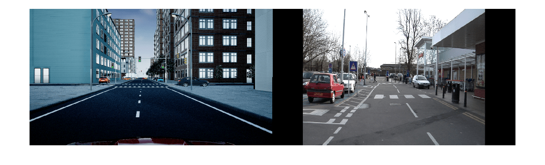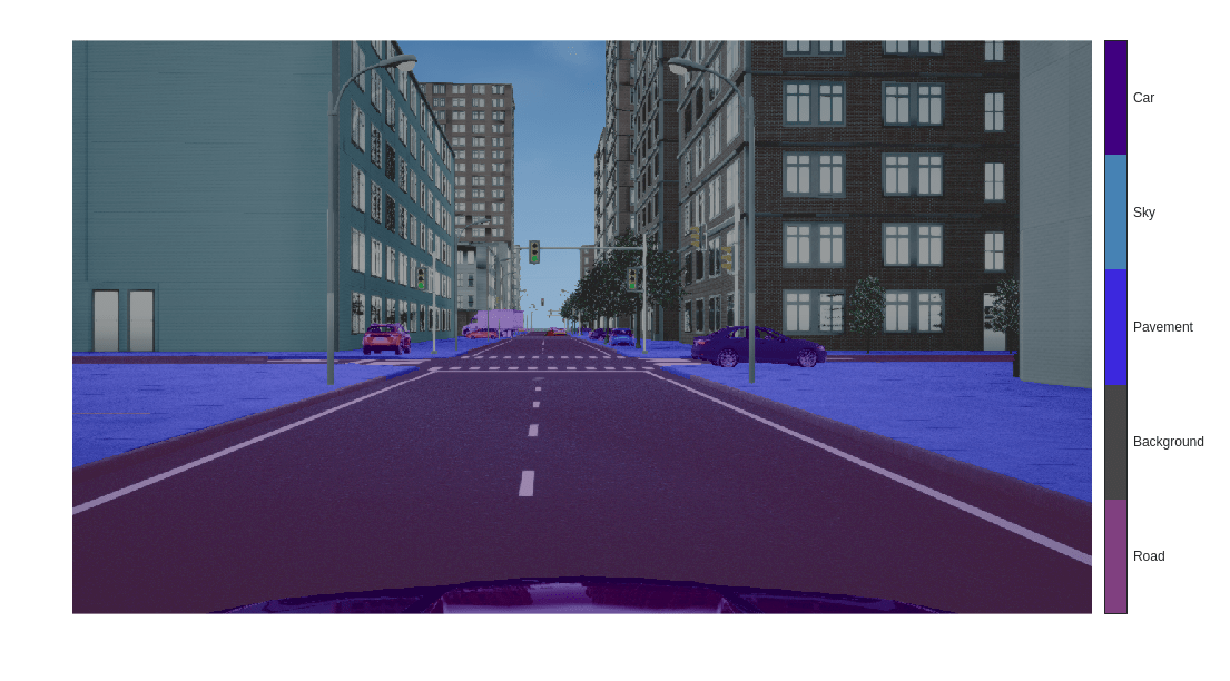 This example uses 3-D simulation data generated by Driving Scenario Designer and the Unreal Engine®. For an example showing how to generate such simulation data, see Depth and Semantic Segmentation Visualization Using Unreal Engine Simulation (Automated Driving Toolbox). The 3-D simulation environment generates the images and the corresponding ground truth pixel labels. Using the simulation data avoids the annotation process, which is both tedious and requires a large amount of human effort. However, domain shift models trained on only simulation data do not perform well on real-world data sets. To address this, you can use domain adaptation to fine-tune the trained model to work on a real-world data set.