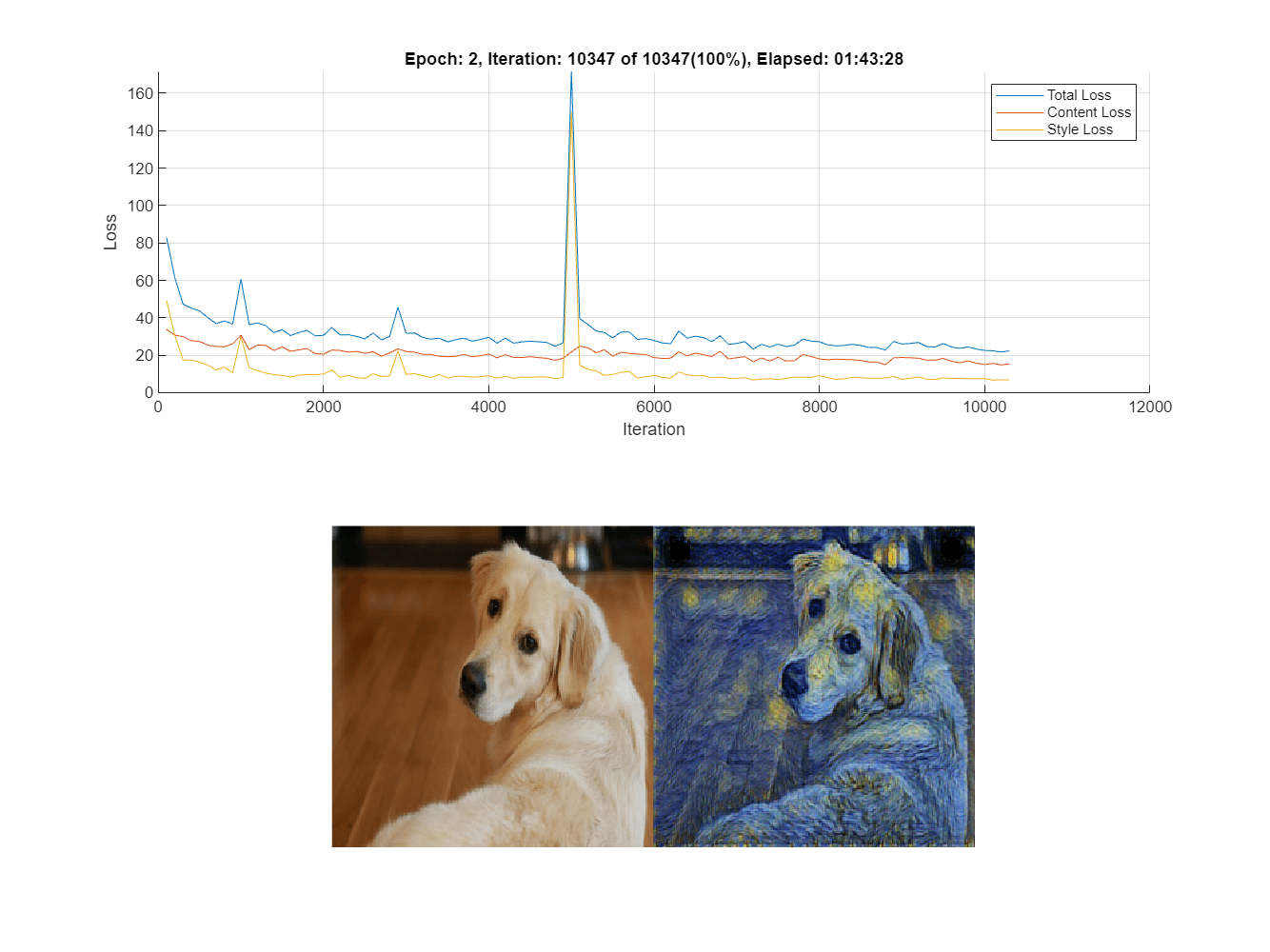 Note that, in order to find a good balance between content and style loss, you might need to experiment with different combinations of weights.