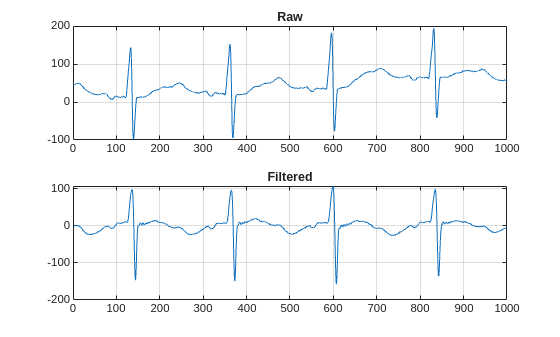 Using the raw ECG signal as input to the network, only about 60% of T-wave samples, 40% of P-wave samples, and 60% of QRS-complex samples were correct. To improve performance, apply some knowledge of the ECG signal characteristics prior to input to the deep learning network, for instance the baseline wandering caused by a patient's respiratory motion.