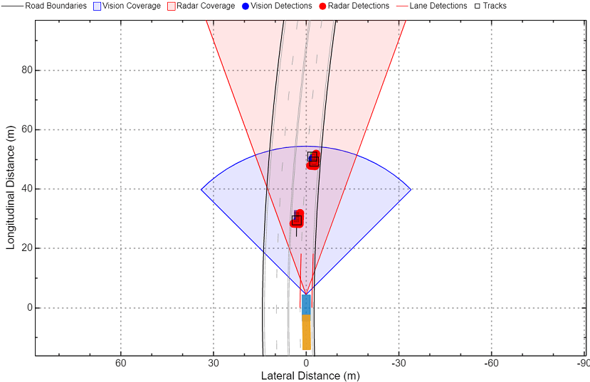 The Driving Radar Data Generator block generates detections from a radar sensor mounted on the ego vehicle.