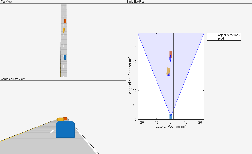 In this example, you generate vision detections programmatically. You can also generate detections by using the Driving Scenario Designer app. For an example, see Create Driving Scenario Interactively and Generate Synthetic Sensor Data.
