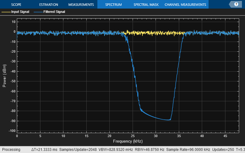 spectrumScope = spectrumAnalyzer(SampleRate=96000,PlotAsTwoSidedSpectrum=false,...