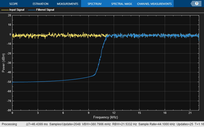 designs a highpass IIR filter and implements a filtObj = designHighpassIIR(Name=Value)dsp.SOSFilter