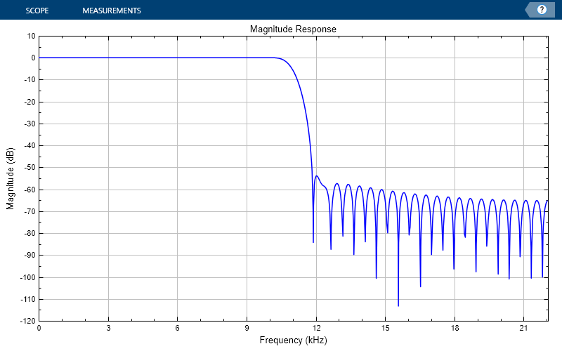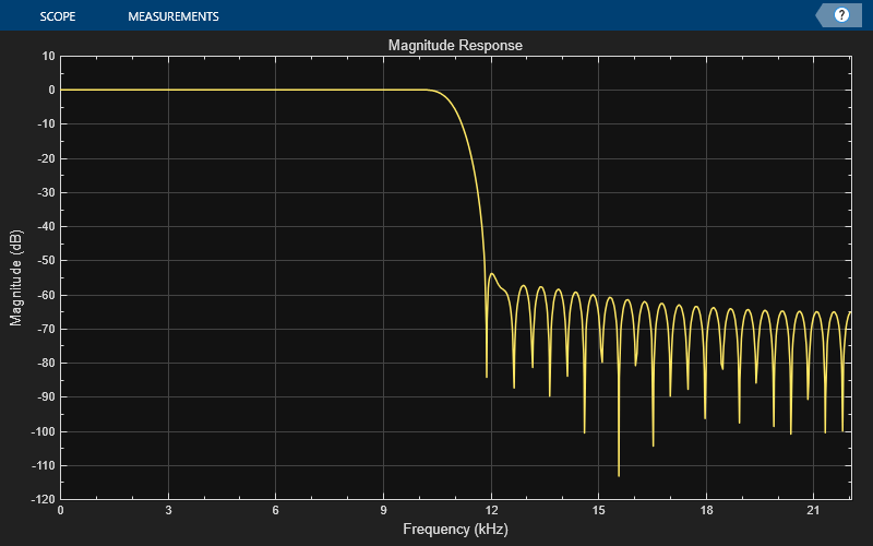scopeFig.Name="Magnitude Response of FIR Filter"; scopeFig.NumberTitle="off"; scopeFig.Position=[1 1 400 250];