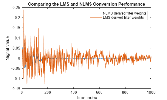 Methodis set to'LMS'or'Normalized LMS'.WeightsOutputis set to'None'or'Last'.Input signal is real-valued.