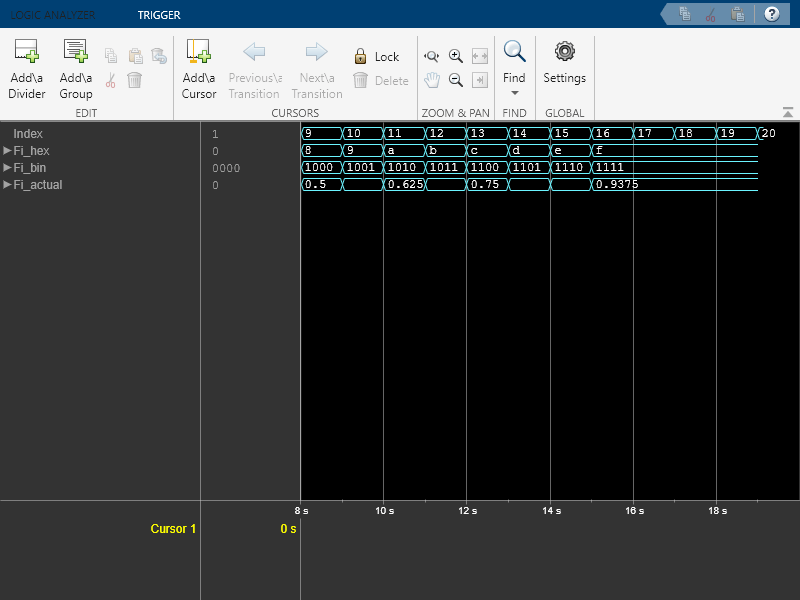 The Logic Analyzer System object™ displays the transitions in time-domain signals. Using dsp.LogicAnalyzer, you can: