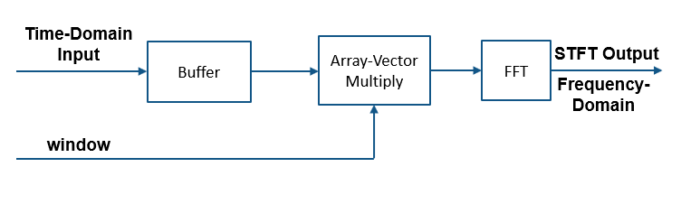(STFT) of the time-domain input signal. The object accepts frames of time-domain data, buffers