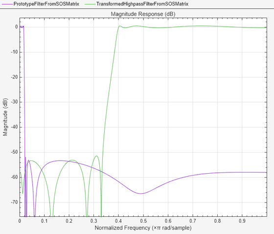 [num2,den2] = iirlp2hp(sosg(:,1:3),sosg(:,4:6),wc,wd);