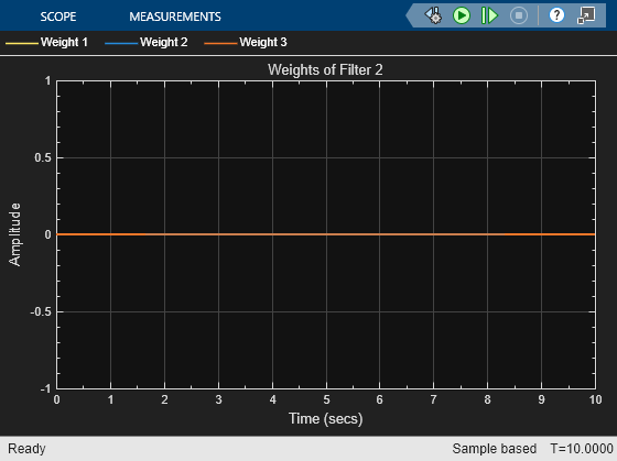 Adapt multiple filters independently using the same LMS Update block. Use the Adapt port of the LMS Update block to selectively enable or disable the filters from being adapted.