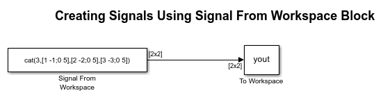 You can also use the Signal From Workspace block to create signals. In this section, the Signal From Workspace block creates a 2-by-2 signal with a sample period of 1 second.