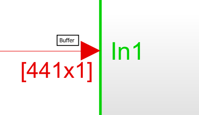 Badges on the model canvas at the input of the subsystem indicate where buffers are inserted.