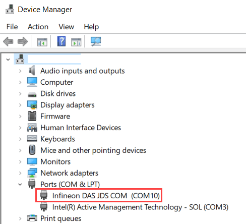 To find the COM port number of the USB Serial Port showing in your host computer, browse to Device Manager > Ports (COM & LPT) to find the COM port.