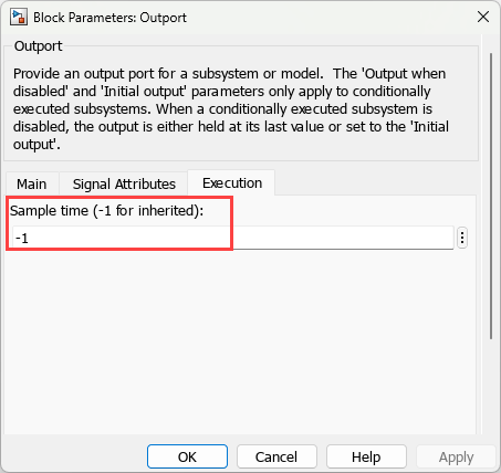 In the Main tab, specify the Sample time parameter. When you specify this parameter as