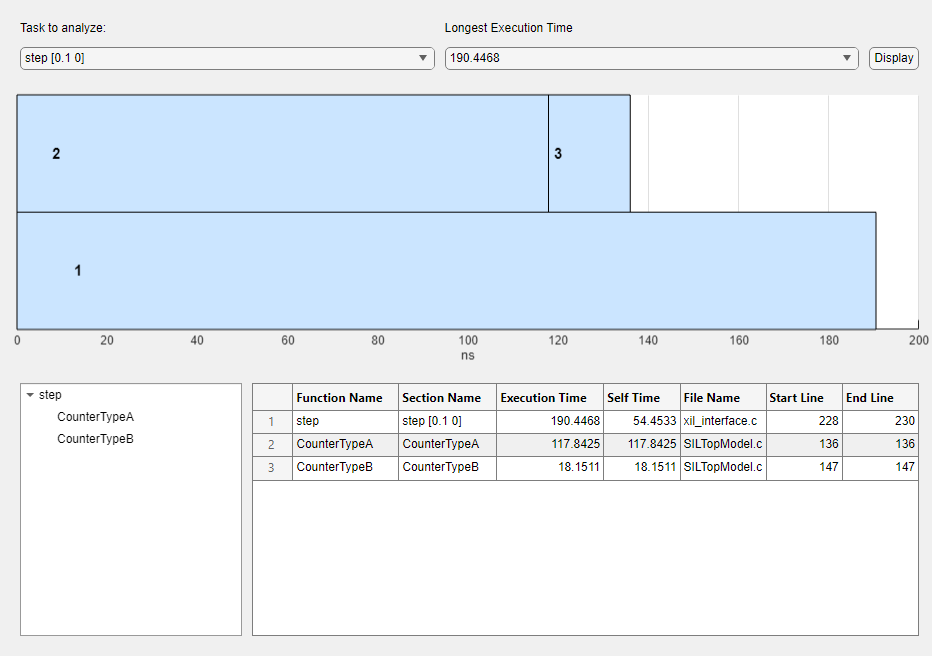 CounterA Test,CounterB Test, orCount Enable Test.Longest Execution Time — Time taken for execution of the task. In this example, the column provides times for the longest five executions in each simulation.